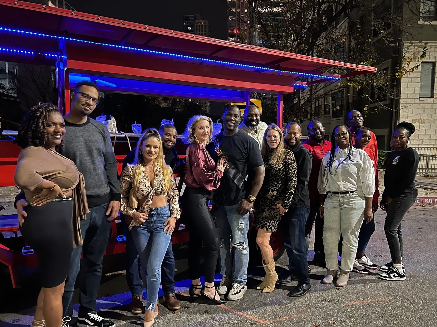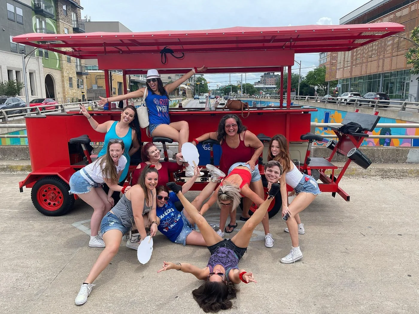 We’re all about capturing unforgettable moments — from birthdays and bachelorette parties to team outings and spontaneous nights out. Want a twist? Join one of our themed rides, pedal to local festivals, or roll with us as we team up with community events and small businesses for one-of-a-kind experiences.